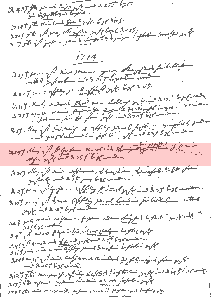 Sterbeeintrag Johann Nikolaus, Mußbach von 1774.
